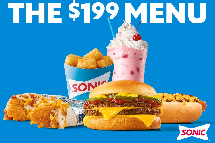 Fast Food Wars in the USA heat up as Sonic introduces a new $1.99 Menu. This should bring on some competition in a hurry. Although in Canadian Dollars this will set you back $2.75, that’s not a bad price for a Queso Wrap, Chili Cheese Coney, Cheeseburger, a milkshake and other items priced at $1.99 USD.