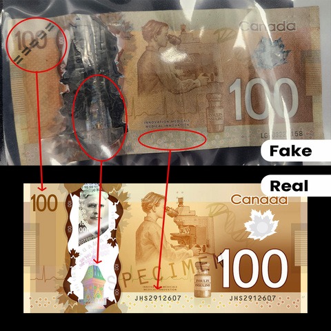 WATCH THE $100. Counterfeit bills may be circulating in Westman after a Neepawa business too some used to purchase merchandise. After review, there were noticeable defects on the bill that indicated it was counterfeit. Here’s what the back of the bill looked like.
